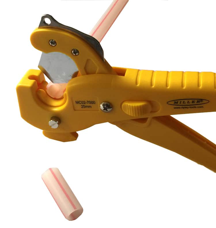 The Miller® MC02-7000 Duct Cutter is designed to make clean, square, and burr-free ring cuts in plastic fiber ducts up to 25mm diameter. This duct cutter is ideal for cutting or scoring PVC, CPVC, HDPE, and other plastic tubing while protecting the inside fibers.